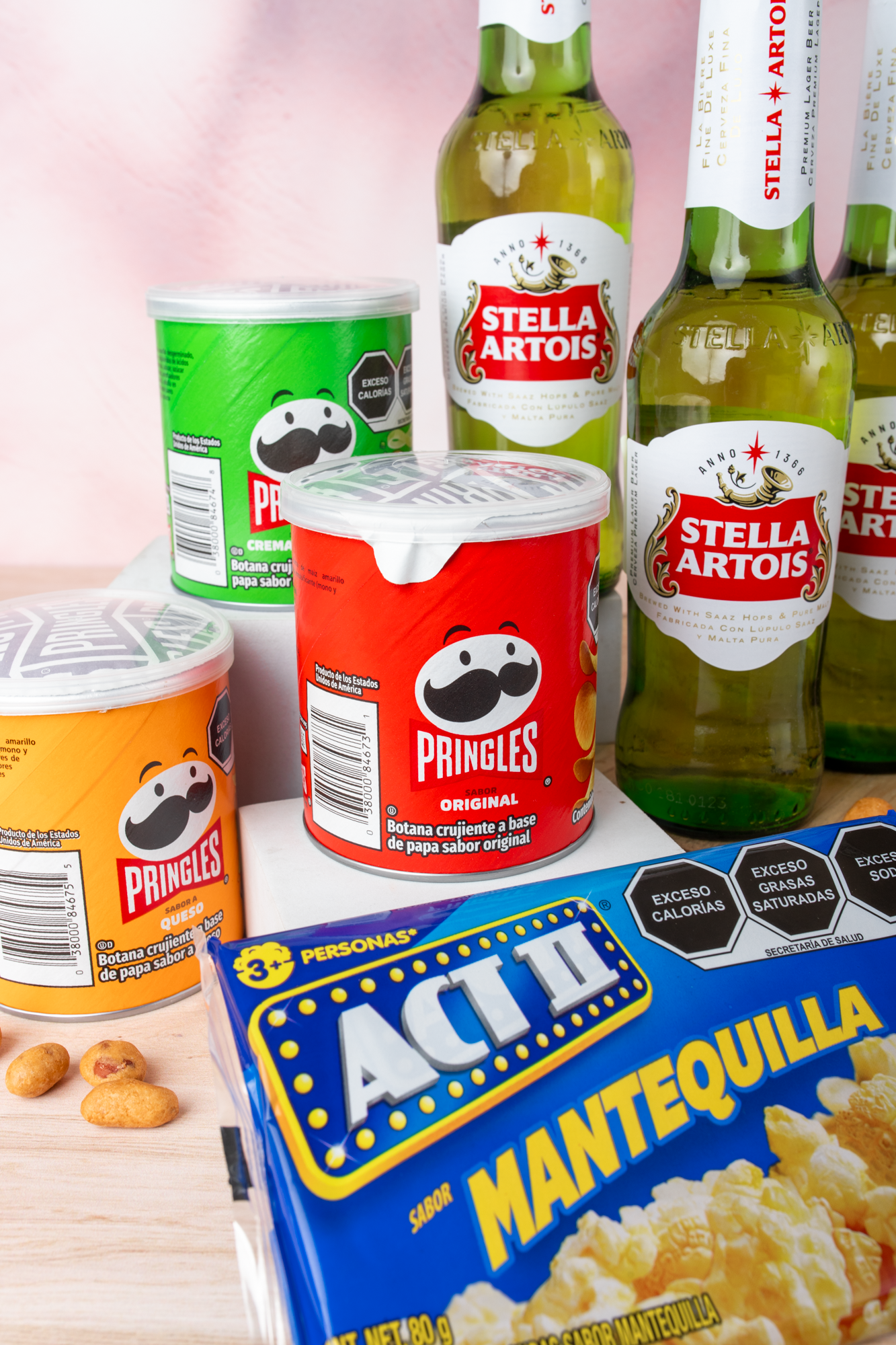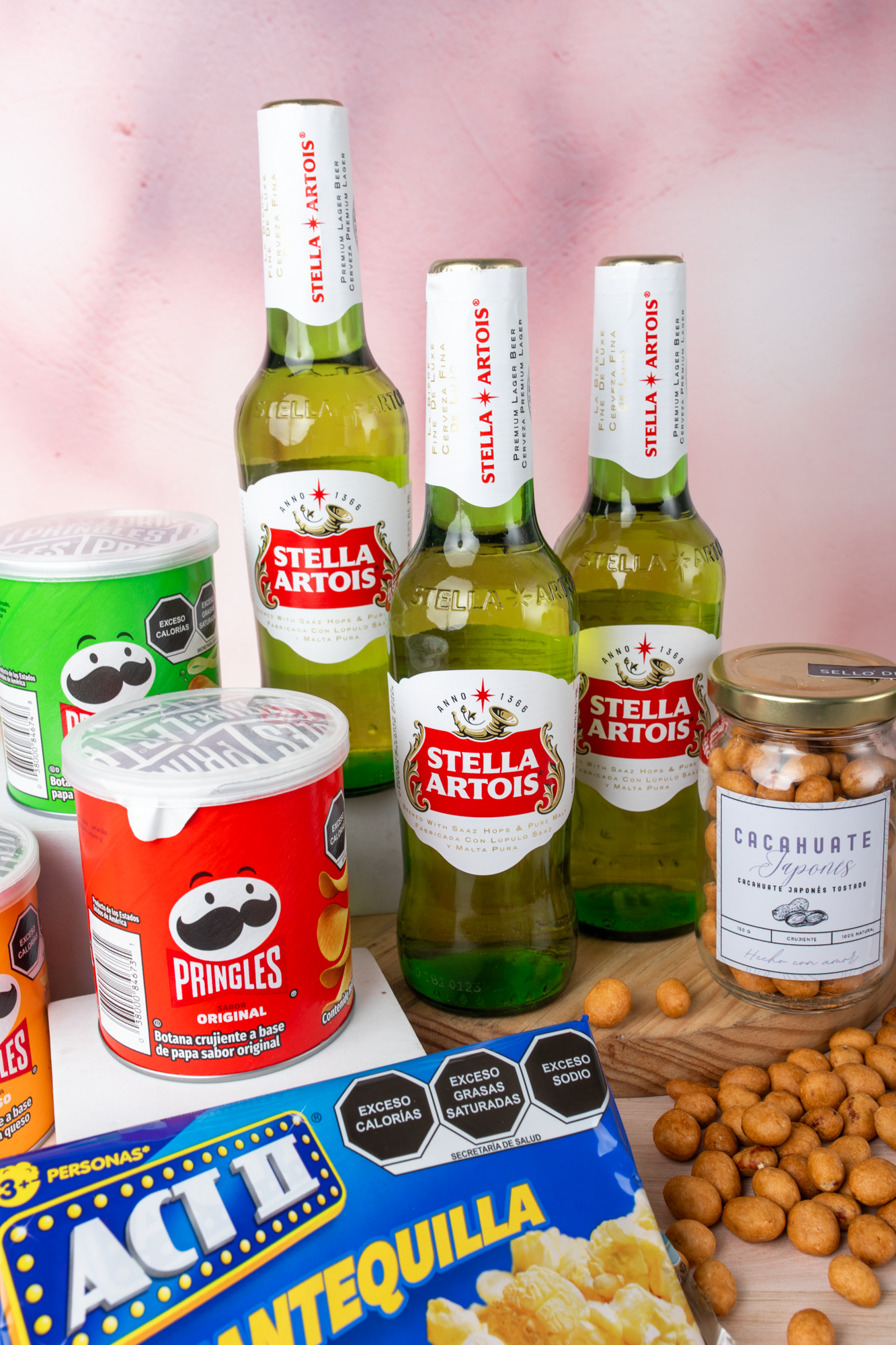 This beautiful arrangement of Stella Artois beers, peanuts, and a bag of Sabritas will make a fabulous gift for your loved one.