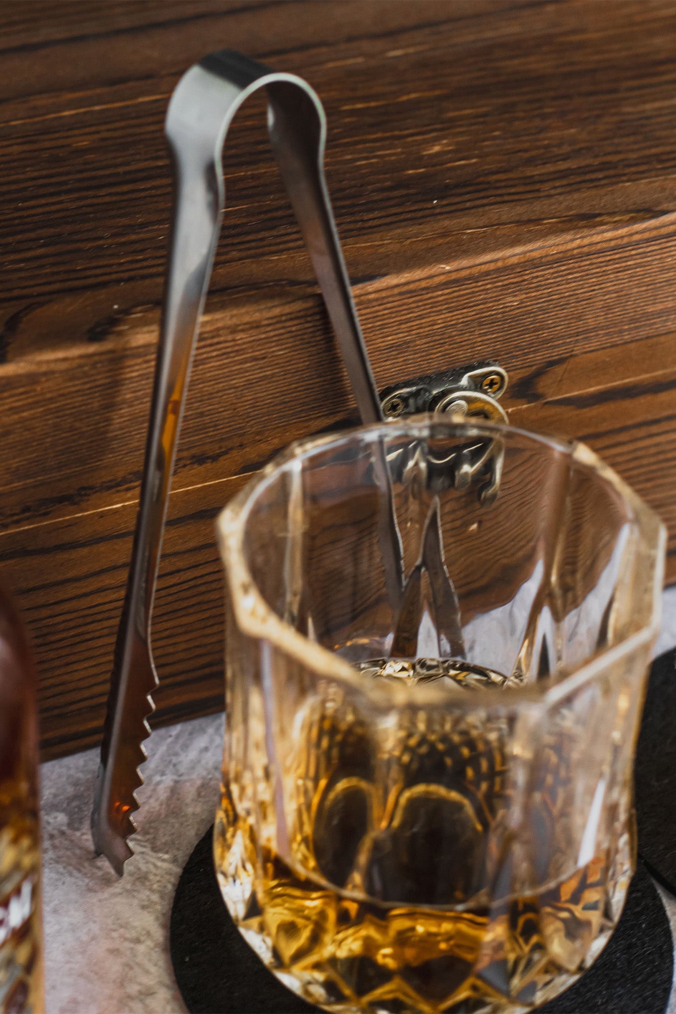 El Kit también cuenta con pinzas de acero inoxidable y portavasos, todo incluido en una caja de madera elegante y sutil.