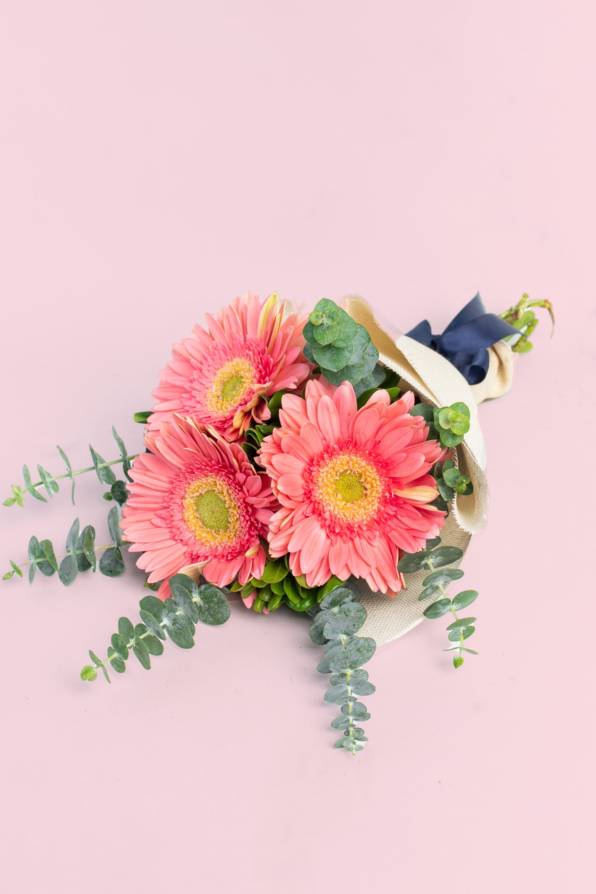 Llena de color y alegría cualquier momento con este delicado ramo de 3 hermosas gerberas, cuidadosamente seleccionadas para resaltar su frescura y belleza natural. Envueltas en un elegante y rústico papel de yute, este arreglo combina sencillez y encanto, perfecto para regalar o decorar cualquier espacio.