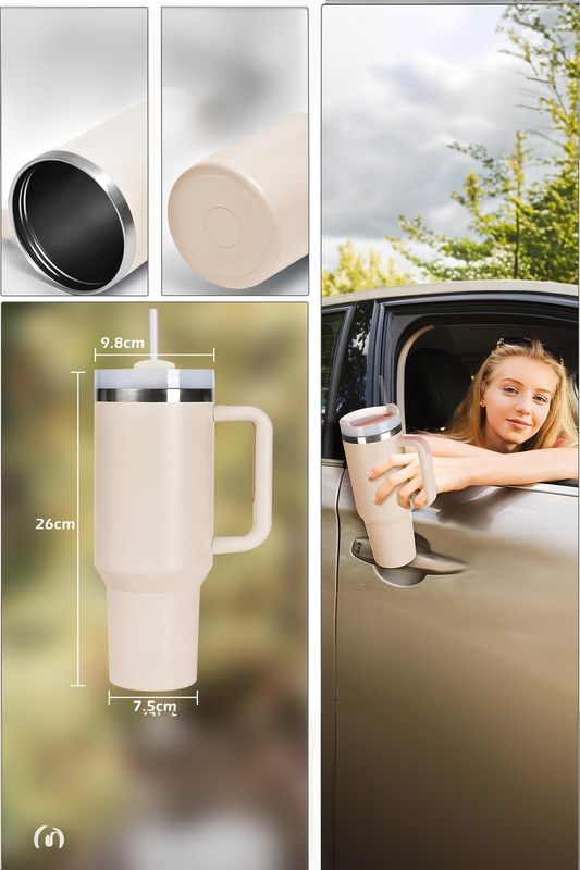 Mantén tus bebidas a la temperatura perfecta durante horas con este Vaso Térmico de 40 oz con asa. Su diseño resistente, ergonómico y fácil de llevar lo convierte en el compañero ideal para el trabajo, el gym, la oficina o tus días ajetreados.